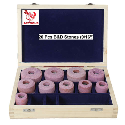 1. Black & Decker Valve Seat Grinding Stones Set Of 20 Pcs For 9/16" Thread 80 Grit with 45 degree angle.