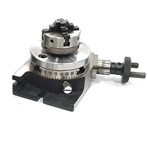 A 3-inch rotary table is a compact work positioning device used in milling machines. It allows you to precisely rotate your work piece at various angles for drilling, milling, and other machining operations.