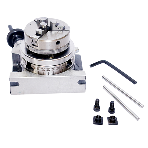 A 3-inch rotary table is a compact work positioning device used in milling machines. It allows you to precisely rotate your work piece at various angles for drilling, milling, and other machining operations.