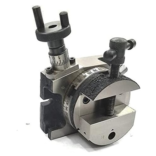 A 3-inch rotary table is a compact work positioning device used in milling machines. It allows you to precisely rotate your work piece at various angles for drilling, milling, and other machining operations.
