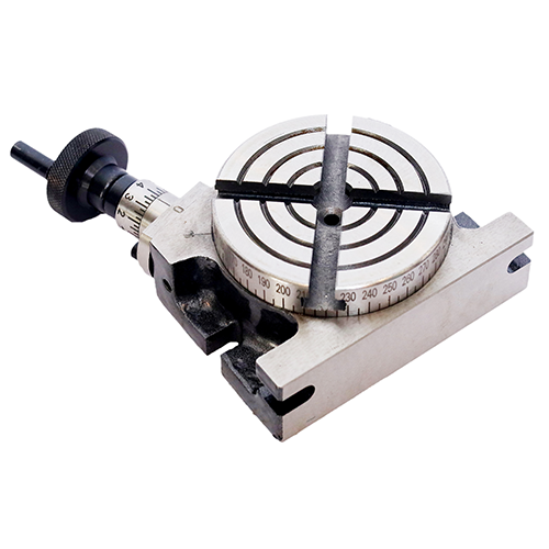 A 3-inch rotary table is a compact work positioning device used in milling machines. It allows you to precisely rotate your work piece at various angles for drilling, milling, and other machining operations.