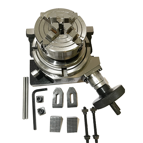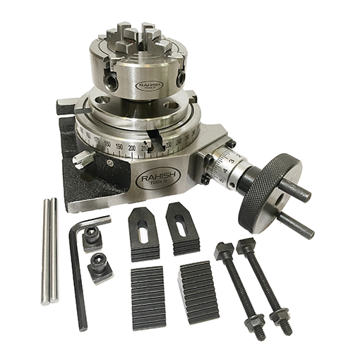 A great combo of 4"/ 100 mm Rotary table with 70 mm 4 jaws Independent Chuck with back plates & Tnuts along with M6 clamp kit - A perfect milling combo for smaller mills.
