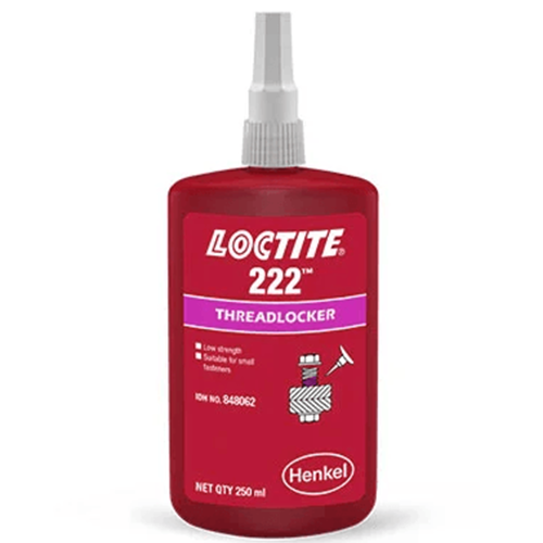Henkel Loctite 222 is a low-strength threadlocker that allows screws, including countersunk head screws and set screws, to be adjusted. Good for low-strength metals that may fracture during disassembly, such as aluminum or brass. The product is compatible with all metals, including passive substrates like stainless steel, aluminum, and plated surfaces. It has been shown to be resistant to mild contamination from industrial lubricants such as engine oils, corrosion prevention oils, and cutting fluids.