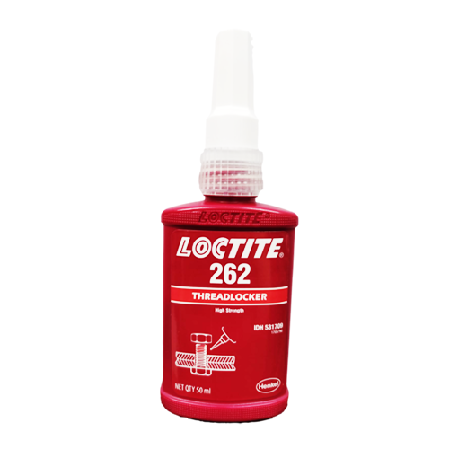 Loctite 262 is a red thixotropic methacrylate-based glue with medium to high strength. It takes 15 min for steel fixtures and 8 min for brass fixtures and 180 min. for stainless steel fixtures. It fluoresces when exposed to UV rays, enabling monitoring. Ideal for applications requiring resistance to adhesive migration. Allows for the pollution of industrial oils to be limited. Metal fasteners can be used interchangeably.