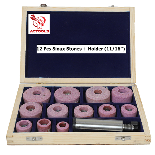A Sioux-style grinding kit is a set of tools used for grinding valve seats in internal combustion engines. Sioux-style grinding kits are used by professional mechanics and engine builders to recondition valve seats. Valve seats are the surfaces in the engine head where the valves seal. Over time, valve seats can wear or become damaged, which can cause leaks and loss of engine performance. Grinding can restore the valve seat to its original condition and ensure a proper seal.