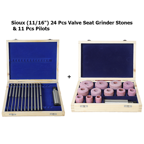 A Sioux-style grinding kit is a set of tools used for grinding valve seats in internal combustion engines. Sioux-style grinding kits are used by professional mechanics and engine builders to recondition valve seats. Valve seats are the surfaces in the engine head where the valves seal. Over time, valve seats can wear or become damaged, which can cause leaks and loss of engine performance. Grinding can restore the valve seat to its original condition and ensure a proper seal.